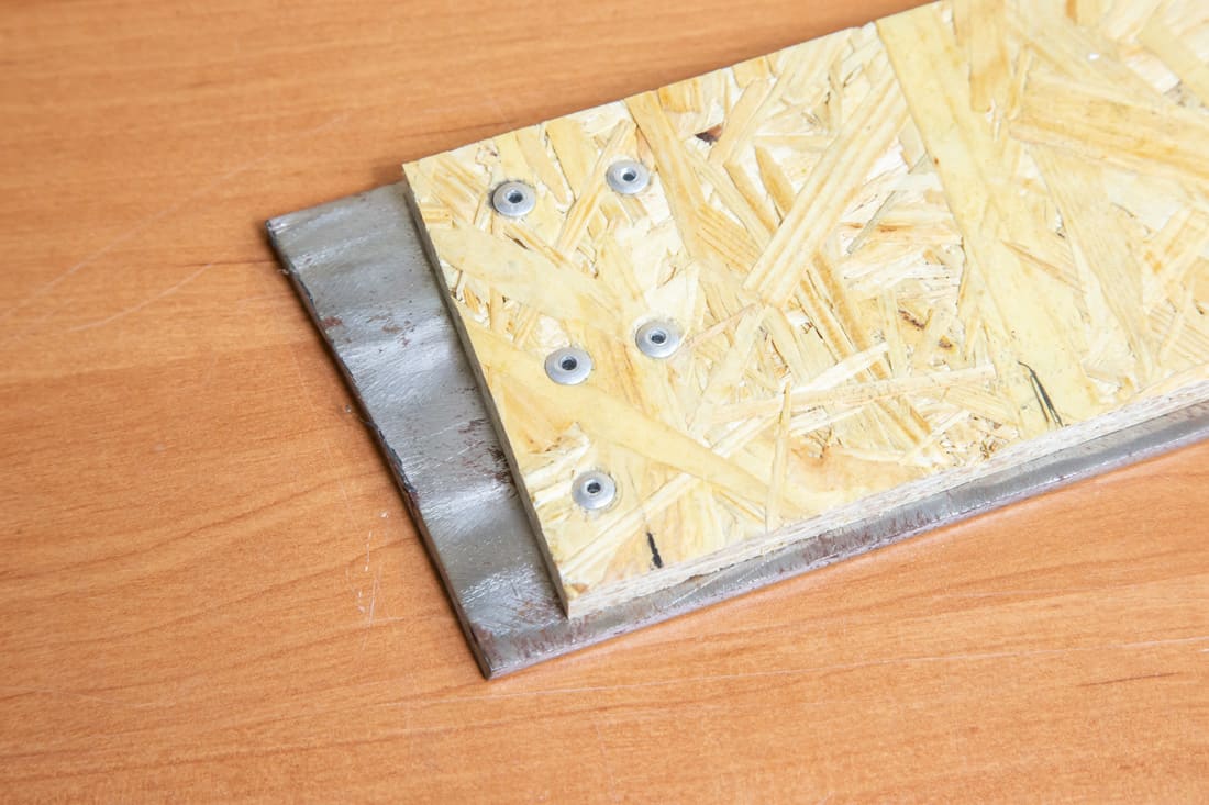Fot. 4. Operacja nitowania płaskownika stalowego i płyty OSB nitem o średnicy 4 mm