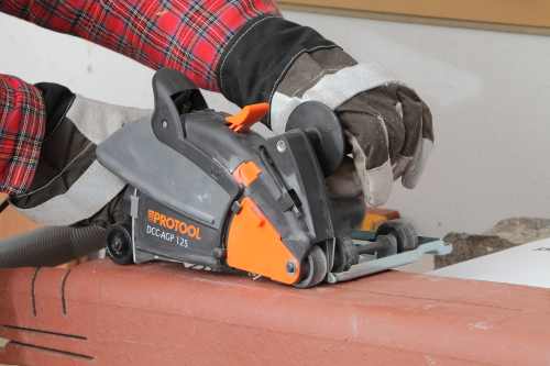 Do testów redakcyjnych trafiła tarcza Adiam Hornet o średnicy 125 mm i szerokości segmentu 2,4 mm. Pierwszy test przeprowadziliśmy na efektywność cięcia klinkieru. Obrabialiśmy nią klinkierowy przewód kominowy o grubości 1,5 cm na długości 50 cm. Użyliśmy do tego bruzdownicy Protool DSC-AGP 125 o mocy 1400 W i obrotach 11.000/min. Uzystaliśmy czas 17,08 s. Można więc powiedzieć, że tarcza Adiam Hornet bardzo efektywnie radzi sobie z najtwardszymi materiałami, takimi jak klinkier, dając przy tym bardzo czyste cięcia. Następnie wykonaliśmy cięcie granitu, wykonując bruzdę w elemencie z materiału o głębokości 3 cm i długości 30 cm. Użyliśmy do tego, tak jak poprzednio, bruzdownicy Protool. Operacja ta zajęła nam 22,2 s. Tu też tarcza Hornet zdała egzamin na piątkę z plusem. Podczas obróbki granitu nie dochodziło do iskrzenia, co oznacza, że narzędzie jest prawidłowo zaprojektowane do obróbki twardych materiałów: beton, kamień i klinkier. Uzyskaliśmy też czyste krawędzie po przecięciu, co oznacza, że tarcza zapewnia wysoką jakość cięcia.